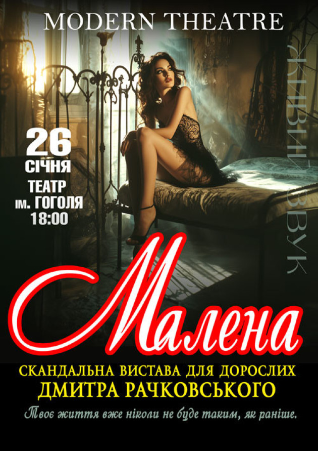 Емоційна та повна їдкої мізантропії вистава про життя та непросту долю прекрасної та сексуальної жінки на ім'я Малена.